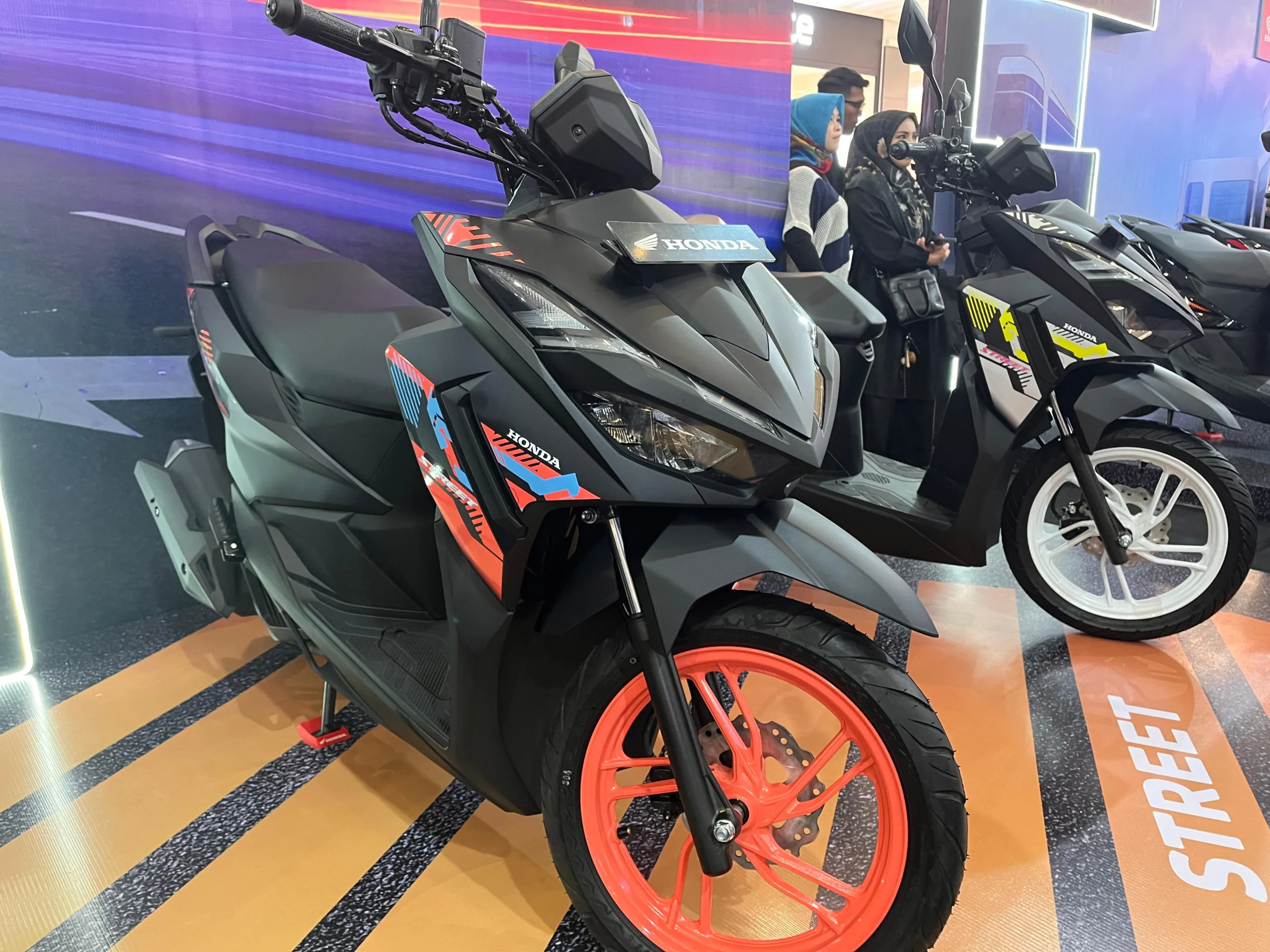 Sementara itu pada tipe Street tiga pilihan warna juga dihadirkan yaitu Street Black Coral, Street Black Purple, Street Black White. Ketiganya dikombinasikan dengan warna velg yang berbeda sehingga tampil semakin atraktif dan keren.