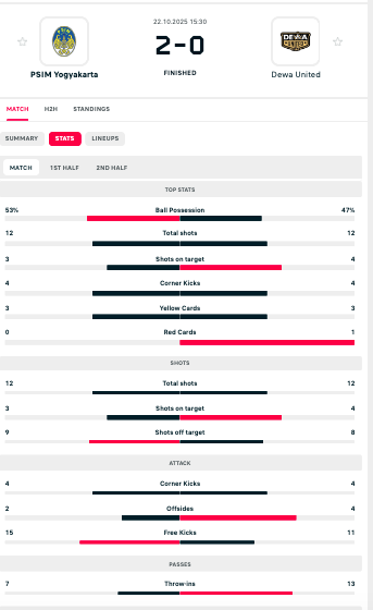 Atas raihan tiga poin tersebut, membuat Laskar Mataram, julukan PSIM, melonjak ke posisi tiga klasemen sementara dengan 15 poin. Sementara itu, Dewa United harus mengakui keunggulan lawan dan menelan kekalahan perdana mereka.