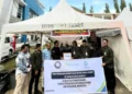 PADANG, KLIKPOSITIF — Polda Sulawesi Tengah (Sulteng) menyerahkan bantuan kemanusiaan di Gudang Logistik Polda Sumbar, Senin, (8/12/2025).